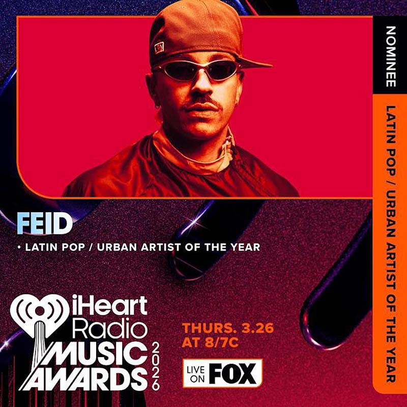 FEID, uno de los artistas más influyentes de la música urbana latina, alcanza otro importante hito en su carrera al obtener su tercera nominación consecutiva a los iHeartRadio Music Awards 2026, en la categoría ‘Artista Latin Pop / Urban del Año’. Esta nominación reafirma su posición como una de las figuras líderes en la expansión global del reggaetón, representando con orgullo a Colombia y a la música latina en uno de los escenarios más prestigiosos de la radio.
